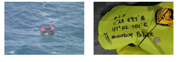 Our crew then successfully dropped a life raft and very high frequency (VHF) radio to Fox, allowing him to safely climb onboard, make contact with our crew, and await rescue by the NT Police marine vessel.