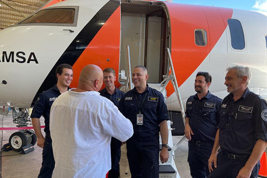 Marin and the other AMSA crew were grateful to meet the man they rescued and praised Fox for carrying lifesaving equipment.