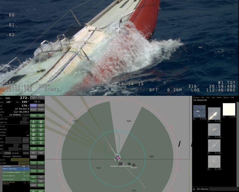 The solo sailor, Derek Desaunois, had abandoned his sinking yacht and was in a life raft tethered to it. He had activated the yacht’s emergency position indicating radio beacon (EPIRB), and the sinking yacht and life raft had also been visually sighted by a passing container ship, the Navios Sagittarius.